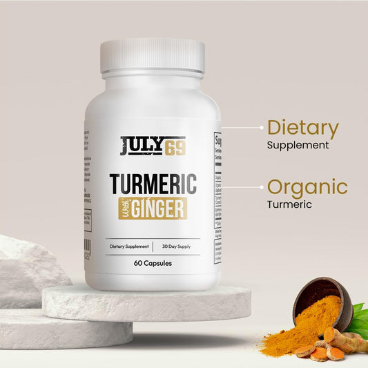 Turmeric and Ginger Capsules with BioPerine - Natural Dietary Supplement with 95% Curcuminoids - 60 Herbal Capsules for Wellness