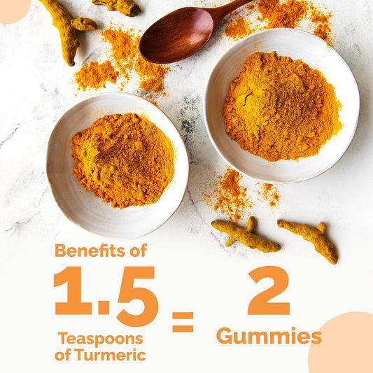 Turmeric Curcumin Gummies with Ginger & Black Pepper for Maximum Absorption - Peach Flavor, 60 Count, Cruelty-Free, Gluten-Free, Non-GMO