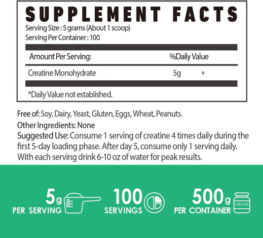 500g Creatine Monohydrate Powder & Capsules for Muscle Building - Pure Micronized Supplement for Pre & Post Workout, Non-GMO Unflavored
