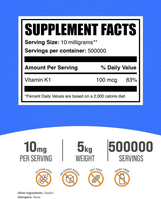5 kg - 11 lbs Vitamin K1 (1%) Powder - BulkSupplements.com