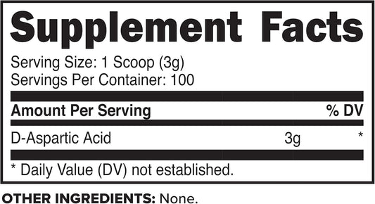 300 Grams Primaforce D-Aspartic Acid Powder - 100 Servings, Unflavored, Vegetarian, Non-GMO Supplement