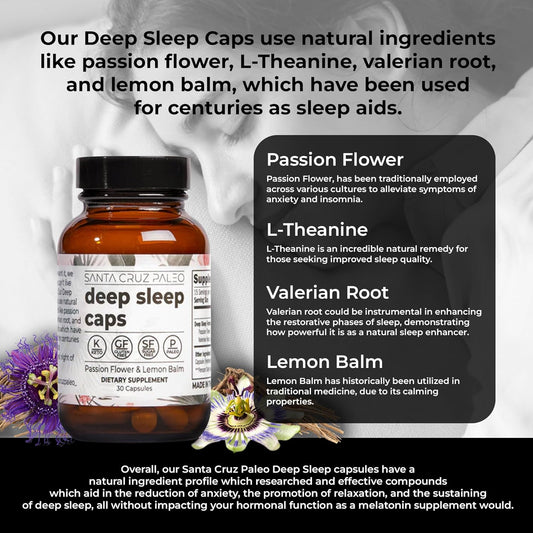 Santa Cruz Paleo L-Theanine Supplement for Relaxation and Sleep Support with Lemon Balm, Valerian Root, Passion Flower - 600mg, 30 CapsulesVendor:Santa Cruz PaleoRegular price $137.28 AUDRegular priceUnit price / per-