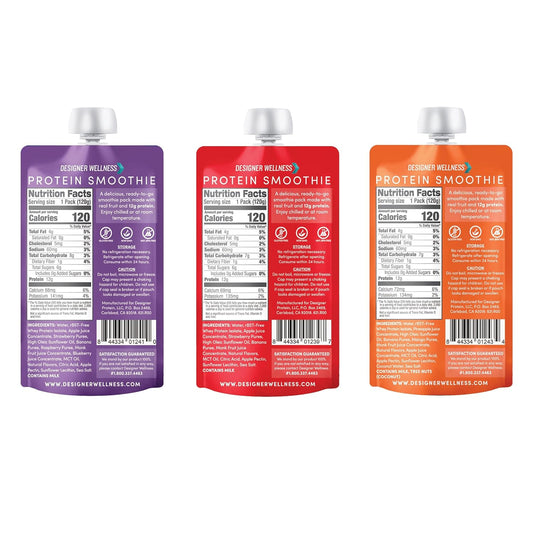 12 Designer Wellness Protein Smoothies with Real Fruit, 12g Protein, Low Carb, Zero Added Sugar, Gluten-Free, Non-GMO - Variety Pack of 12