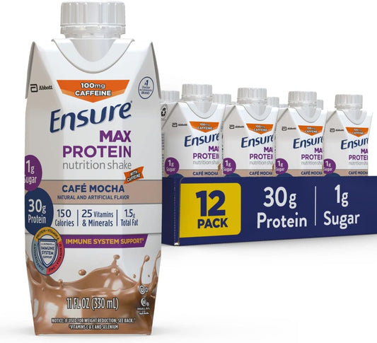 30g Protein Shake Variety Pack - Creamy Strawberry Flavor, 1g Sugar, High Protein Liquid Nutritional Shakes, 11 fl oz, Pack of 12