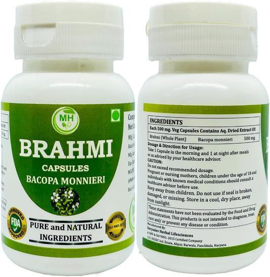 60 Veg. Capsules of Morsan Healthcare Brahmi (Centella Asiatica) 500mg - Pure Herbal Supplement (2 Pack)