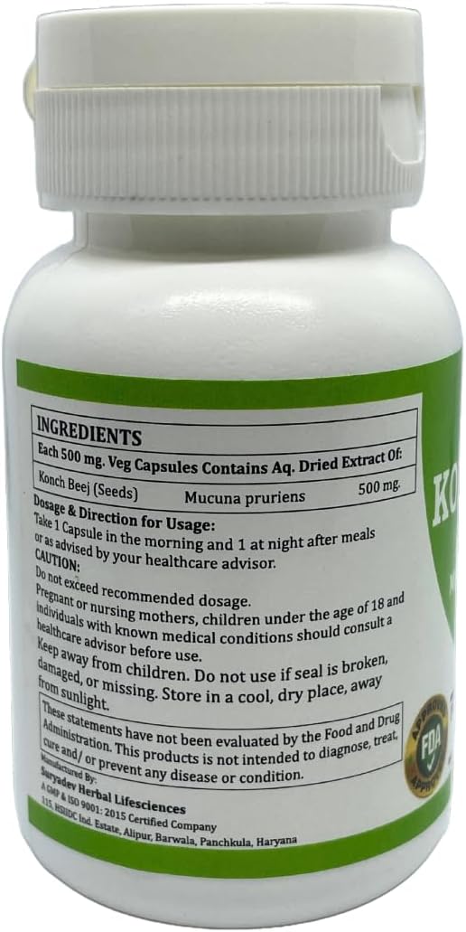 60 x 500 mg Mucuna Pruriens Capsules by Morsan Healthcare - Natural Herbal Supplement