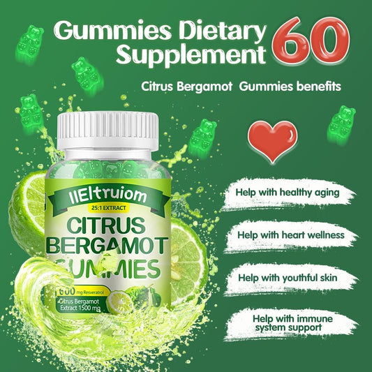 1500mg Organic Citrus Bergamot Gummies with Resveratrol & Niacin - Heart Health Supplement for Adults - Vegan-friendly - 60 Gummies