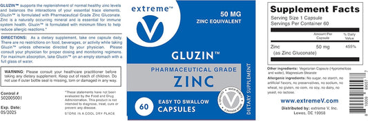 2 Bottles of Extreme V Gluzin 50MG Pharmaceutical Grade Zinc for Frontline Defense - Vegan Friendly (120 Vegetarian Capsules)