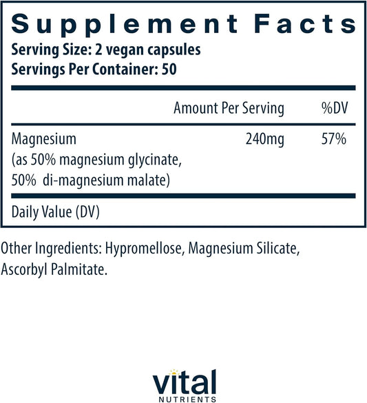 120mg Vegan Magnesium Glycinate + Malate Supplement for Muscle, Heart, Bone Support* | Promotes Relaxation | 100 Capsules
