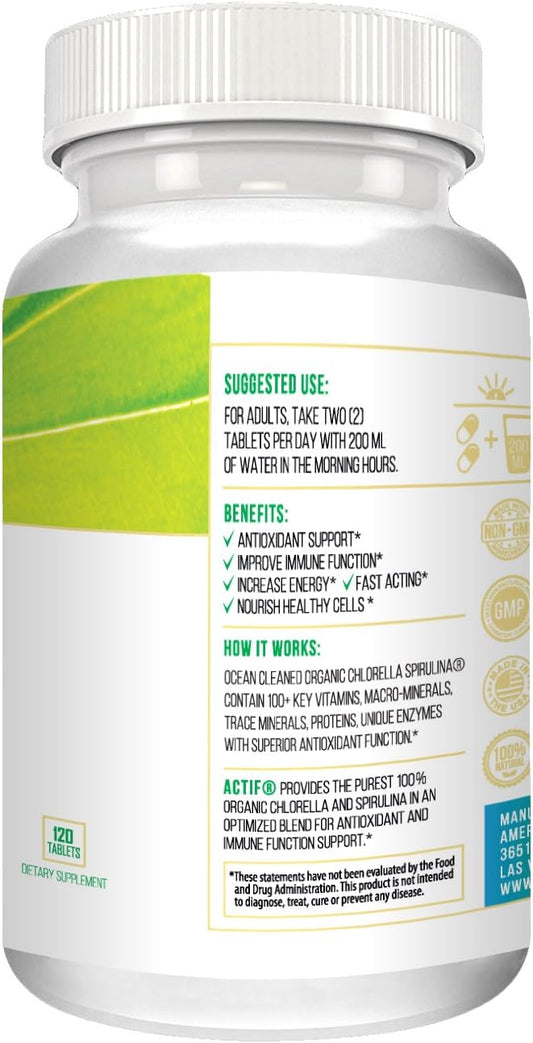 100% Organic Chlorella and Spirulina Tablets, Made in USA, Non-GMO, Best Detox and Vegan Supplement - 120 Tablets