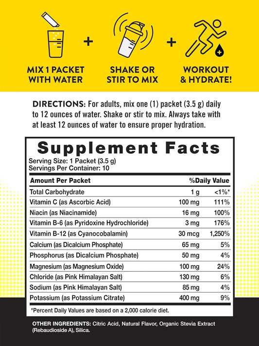 10 Pack Nature's Truth Electrolyte Powder Packets - Sugar Free Vegan Drink Mix Supplement - Non-GMO & Gluten Free