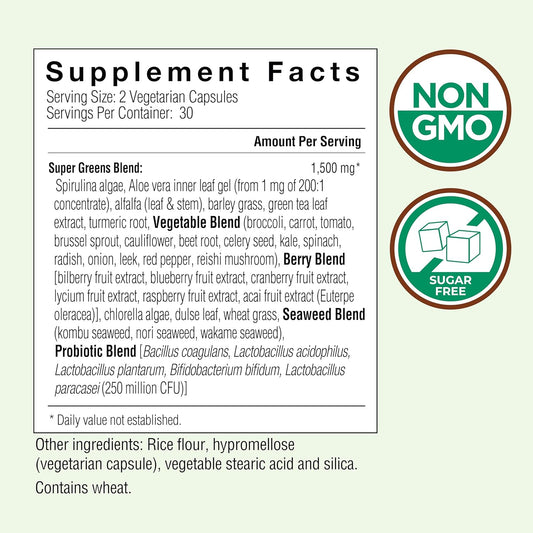 32 Superfood Vegicaps: Whole Food Supplement with Greens, Fruits, Vegetables, Mushrooms, Probiotics - Antioxidants, Phytonutrients - 60 Count