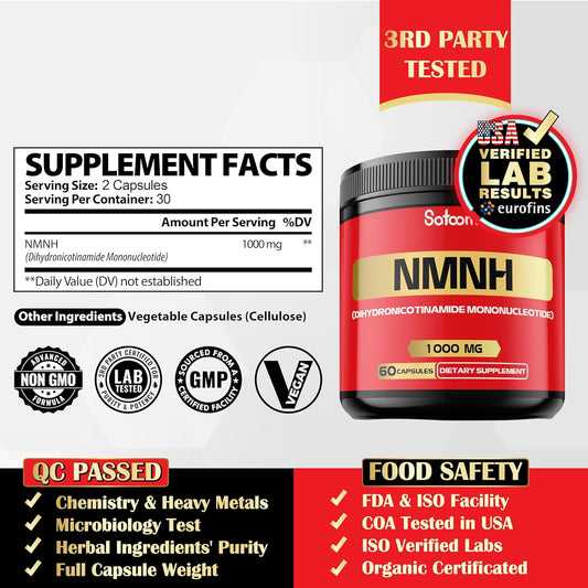 1000mg Satoomi NMNH Capsules - NAD+ Support Supplement - 60 Count - 30 Day Supply
