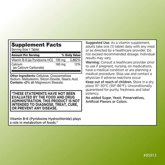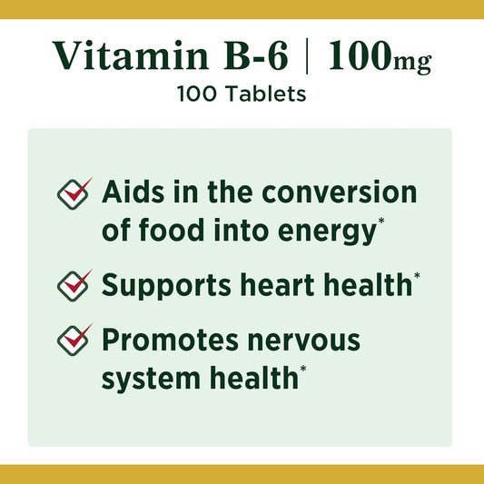 100 Tablets of Nature's Bounty Vitamin B6 for Energy Metabolism & Nervous System Health, 100mg - Pack of 200