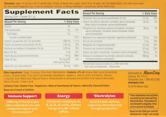 Emergen-C Vitamin C 1000mg Dietary Supplement Drink Mix, Super Orange Flavor, 30 Count Packets