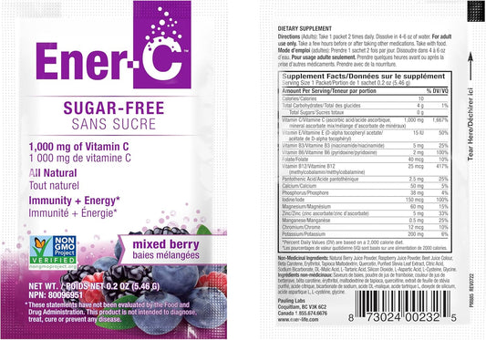 Mixed Berry Ener-C Sugar-Free Multivitamin Drink Mix - 1000mg Vitamin C & Electrolytes for Immunity Support - Vegan & Gluten-Free - 30 Packets
