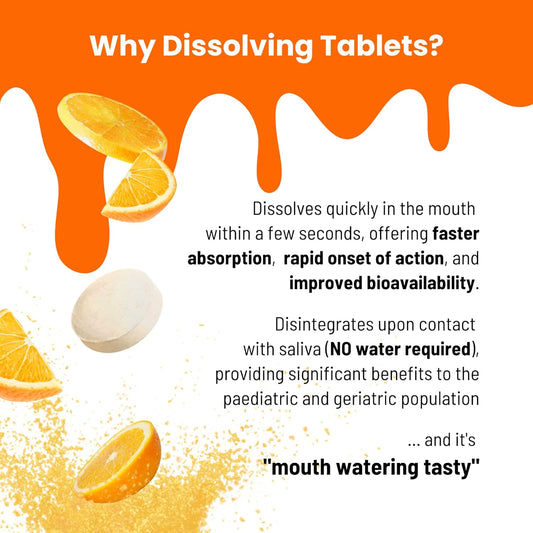 Nutra Meltz 250mg Vitamin C Tablets - Boosts Immune System, Supports Bone Health, Quick Dissolve Orange Flavor - 60 Tablets
