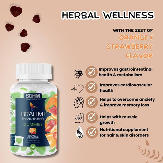 Immune-Boosting Brahmi and Shankhpushpi Gummies - 60 Count, Vegetarian & Gluten-Free, Individually Wrapped to Add Life to Lives