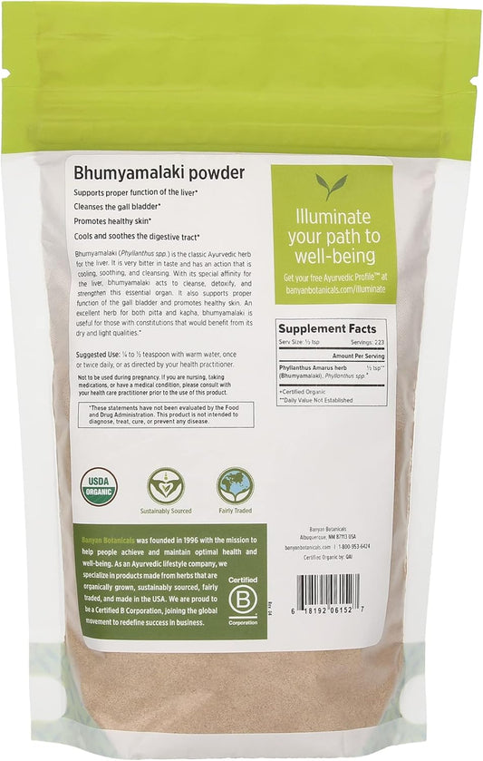 Organic Bhumyamalaki Powder for Liver Health - Phyllanthus spp. Supplement for Natural Liver Detox - 1/2 lb Vegan Non GMO