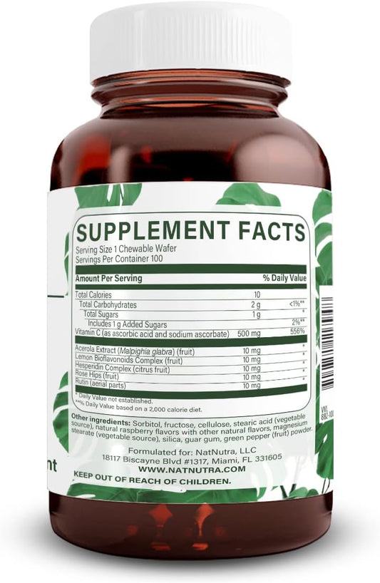 Vegan Vitamin C Supplement, 500 mg, Immune Booster for Kids and Adults, Supports Bone, Skin, and Heart Health, Vegetable Source, 100 Wafers