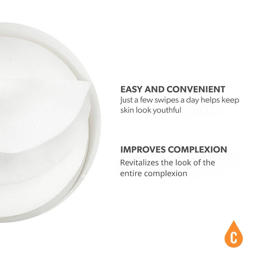 Vitamin C Ester Pads with Hyaluronic Acid for Anti-Aging Facial Treatment - Fruit Extracts - Pre-Soaked Facial Disc - 60 Count
