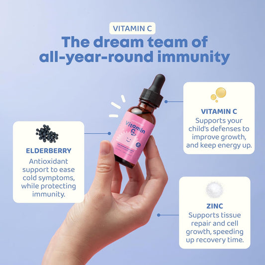 Kids Elderberry Liquid Supplement with Vitamin C and Zinc - Alcohol-Free Toddler Formula - 30 Servings (2 fl oz)