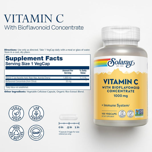 Solaray Vitamin C Bioflavonoid Concentrate 1000mg - Immune Support, Skin Hair Nails - Vegan, 100 Servings