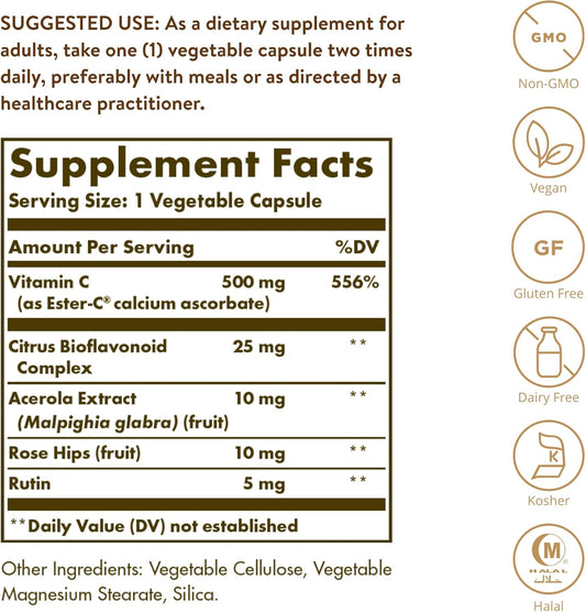 Solgar Ester-C Plus 500mg Vitamin C Capsules - Gentle Antioxidant & Immune Support - Non Acidic Formula - Vegan & Gluten Free - 100 ServingsVendor:SOLGARRegular price $93.33 AUDRegular priceUnit price / per-