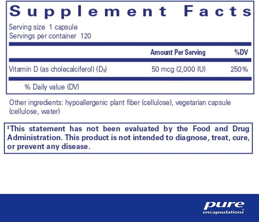 Vegan Vitamin D3 Capsules for Musculoskeletal, Cardiovascular, Neurocognitive & Immune Health - 120 ct.