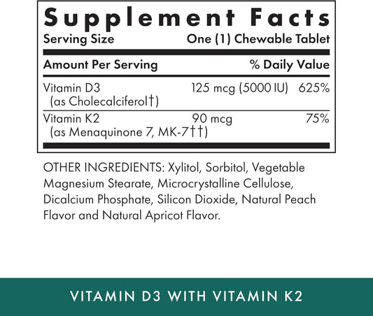 Michael's Health Vitamin D3 with K2 Chewable Tablets - 180 Servings, Apricot Flavor, Vegetarian, Bone & Immune Support, No Sugar - 2 Pack