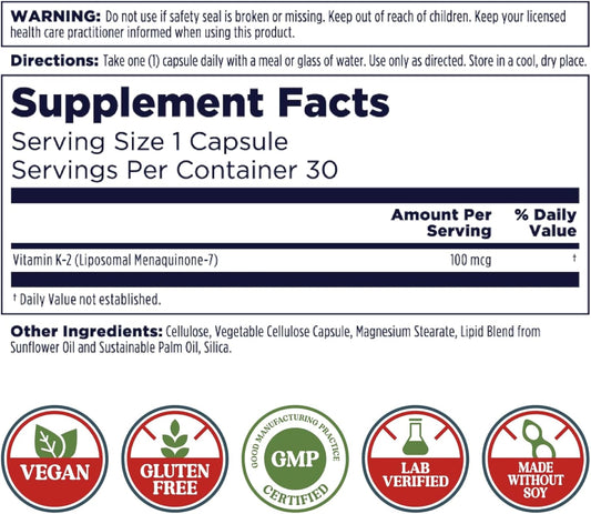 High Absorption Liposomal Vitamin K2 MK7 Supplement for Advanced Bone Support - Vegan Capsules, Gluten Free, Soy Free - 30 ServingsVendor:KALRegular price $107.05 AUDRegular priceUnit price / per-