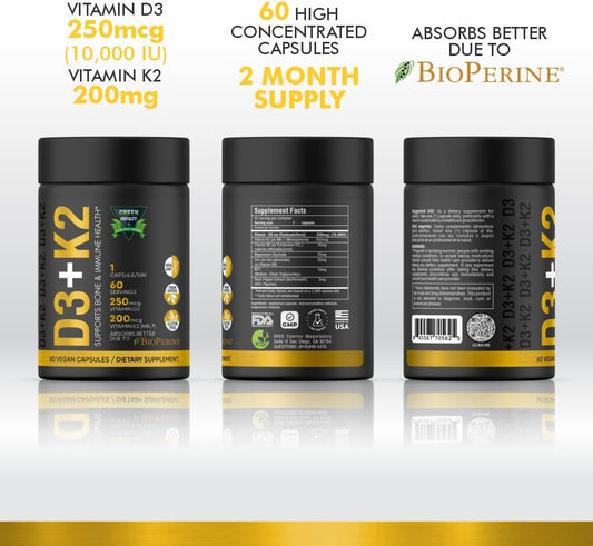 Vitamin D3 + K2 Soft-Gels with Coconut Oil | 2-in-1 Supplement for Immune, Heart, Joint, Teeth, Bone Health | 60 CapsulesVendor:GREEN ROYALTYRegular price $107.80 AUDRegular priceUnit price / per-