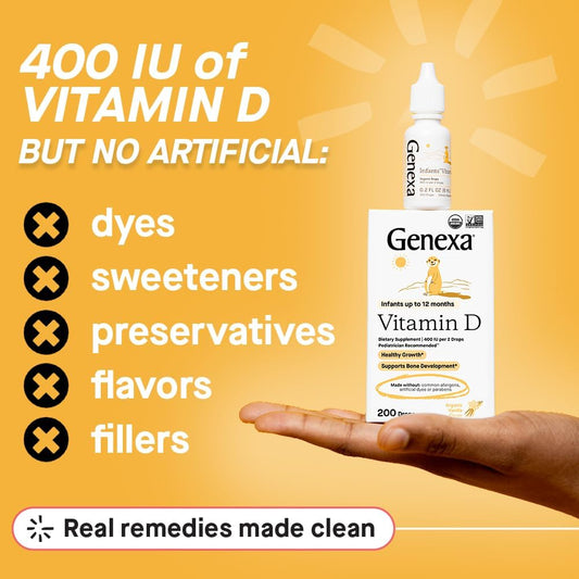 Certified Organic Vanilla Flavor Vitamin D Liquid Drops for Infants, Babies & Toddlers | Supports Growth & Bone Development | Gluten-Free & Non-GMO | 90 Servings