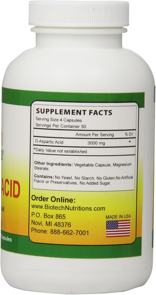 High Potency Biotech D-Aspartic Acid Supplement, 3000 mg, 200 Count x 2 - Muscle & Strength Support