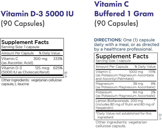 Metabolic Maintenance 2-Product Set: Vitamin D-3 5000 IU + Buffered Vitamin C with Bioflavonoids - Bone, Immune, Mood, Cardiovascular Support - 90 Capsules Each