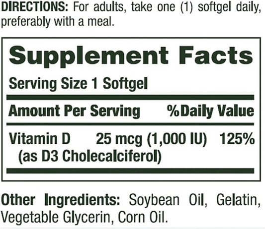 Pack of 360 Nature's Bounty Vitamin D3 1000 100 mg Softgels for Immune Support