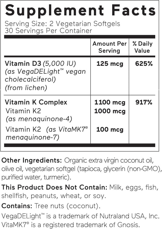 Vitamin K2 (MK7) 100mcg + Vitamin D3 5000 IU Softgels - Gluten Free & Non-GMO - 120 Count