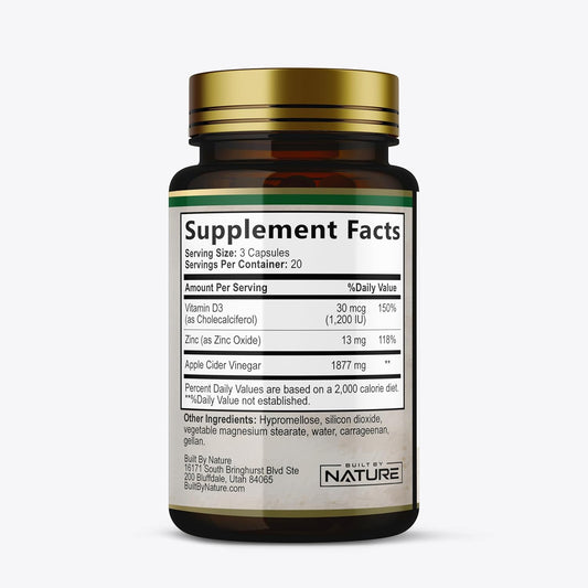 1877mg Apple Cider Vinegar Capsules with Vitamin D and Zinc for Immune & Digestion Support - ACV Supplement for Men & Women - 60 Pills