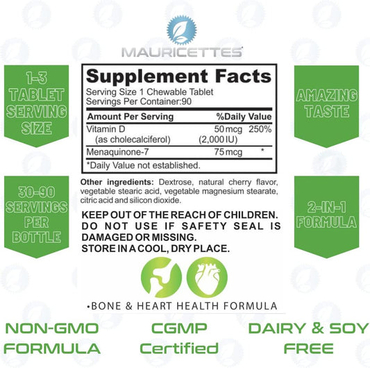 Delicious Chewable D3 K2 Vitamin for Adults and Kids - Boosts Vitamin D and K2 Levels - Easy to Take and Great Taste