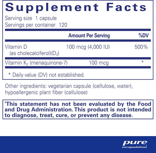 Vitamin D3 & K2 Capsules for Bone and Vascular Health - 120 Count