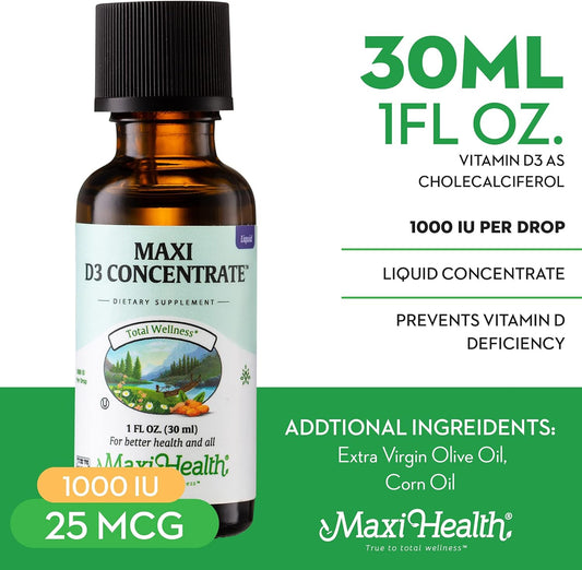 High Potency Vitamin D3 Concentrate - 1000 IU Per Drop - Liquid Supplement for Calcium Absorption, Immune & Bone Health - 1 fl oz