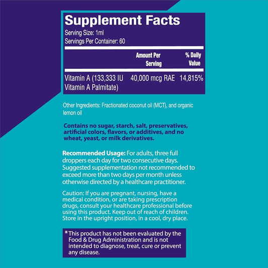 Natural 2 oz Vitamin A Drops - 400,000 IU per Serving for Immune Health - 2 Day Supply
