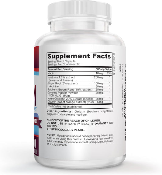 Natural Vein & Leg Circulation Support Supplement with 8 Active Ingredients - Boost Blood Circulation - Vein Health Formula - 90 Capsules