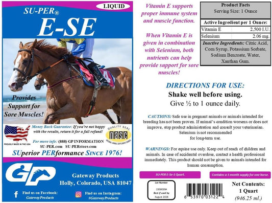 E-Se Horse Antioxidant Supplement - Supports Sore Muscles with Vitamin E & Selenium - 1 Quart SupplyVendor:SU-PERRegular price $153.17 AUDRegular priceUnit price / per-