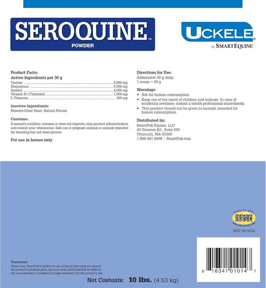 SmartEquine Uckele Seroquine Powder - Herb-Free Calming Supplement for Horses, 10 lb - Ideal for Travel & CompetitionVendor:UckeleRegular price $514.94 AUDRegular priceUnit price / per-