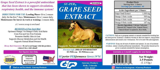 Grape Seed Extract Equine Antioxidant Supplement for Performance Horses - Supports Circulation, Respiratory Health & Immune System - 2.5 lbs (2 Pack)Vendor:SU-PERRegular price $132.01 AUDRegular priceUnit price / per-
