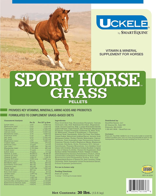 Uckele SmartEquine Sport Grass Pellets 30 lb Bag | Horse Probiotics, Prebiotics, Vitamins & Minerals | Vitamin E Supplement for Athlete Equines | Amino Acids for Muscle SupportVendor:UckeleRegular price $1,018.07 AUDRegular priceUnit price / per-