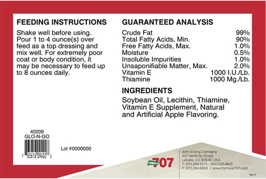 Gallon Liquid Equine Supplement for Healthy Weight and Coat - Formula 707 Glo-N-Go