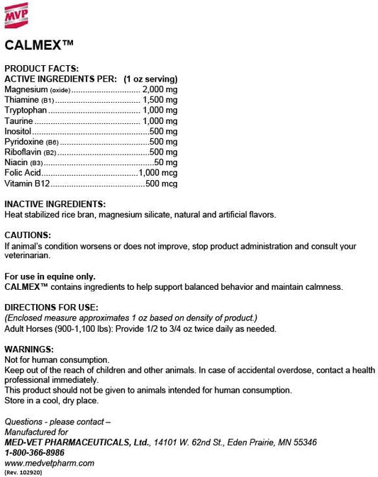 5lb MVP Calmex: Natural Calming Support Supplement for Horses