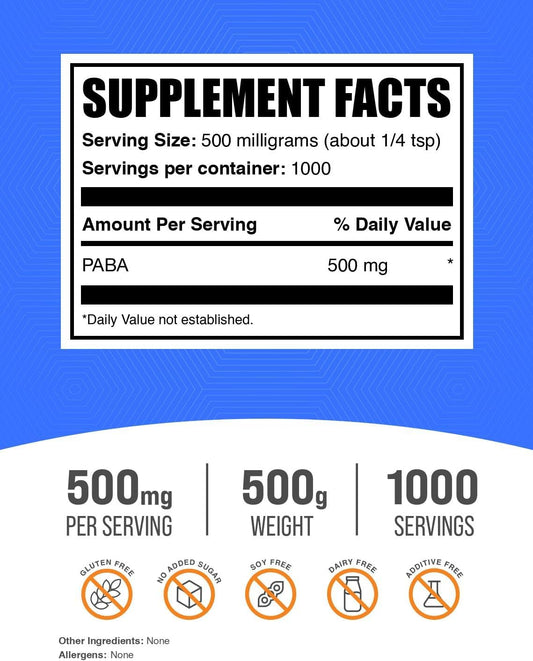 BulkSupplements.com PABA Powder - 500g (1.1 lbs) - Vegan & Gluten Free PABA Supplement - 500mg per Serving - Pure PABA for Better Wellness